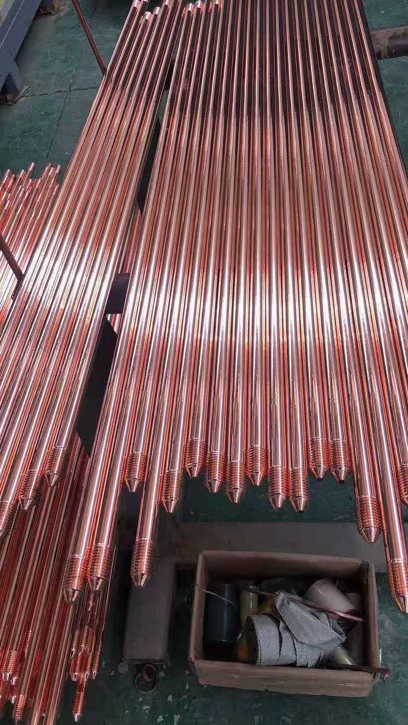 銅包鋼接地極配有同軸連接器、驅動頭和鉆頭等配套件。根據(jù)不同地質及使用要求可以通過采用黃銅同軸連接器(連接螺栓)連接,任意增加鉛包鋼接地極的長度。項端采用驅動頭(連接螺栓)連接,供棒打深時打擊使用。末端采用鉆頭(連接螺栓)連接,以便于將棒打深。